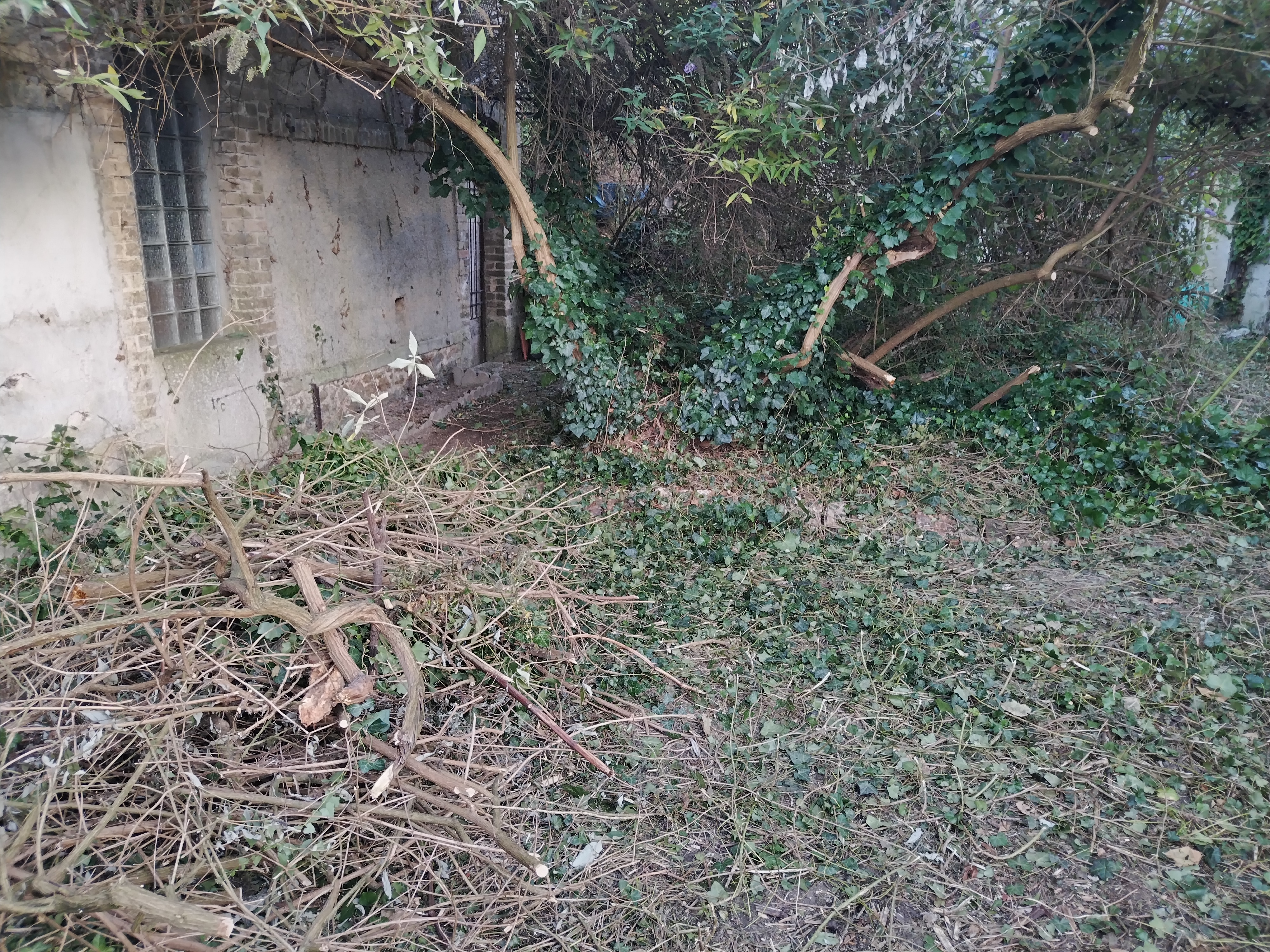 Une première intervention d'envergure. La rénovation d'un jardin, commence par un bon nettoyage. il faudra également ressemer une pelouse digne de ce nom, celle-ci ayant finie étouffé par le lierre.